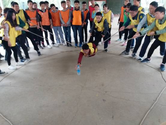 训练第一个项目是“心碎鼓动”,每组16名同学共同协作,展现了团队的力量,相互鼓励、共同协作、加深同学们之间的感情,接下来,又进行了“信任背摔”和“雷区取水”两个训练项目,通过这两个项目,同学们深刻体会到,只要相信自己,乐观接受挑战,无论什么困难都能克服。