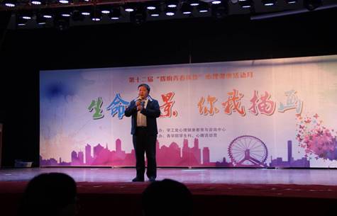 接下来,学工处处长张水新发表了讲话,肯定了历年来心理健康活动月在学生中的影响力。提出了大学生要“三学会”,即:学会感谢,感谢父母、老师、同学、朋友;学会交往,处理好宿舍同学、班级同学的关系,学会与不同人和睦相处;学会自爱,热爱自己的生命,热爱自己的身体。并且期望同学们能够关注身心健康,走出宿舍,走进操场,走进教室,走进图书馆,在知识的海洋中实现自己生命的价值,鼓励同学们积极参与本次活动中来,在实践中学习生命、感受生命。在同学们的掌声中宣布本次活动月正式开始。