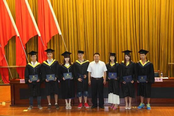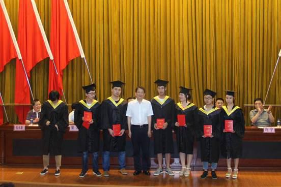 毕业典礼由副校长王路群主持。在庄严肃穆的国歌声中,毕业典礼正式开始。王路群副校长首先宣读了对优秀毕业生的表彰决定,随后,胡大平书记、马蜂校长分别为优秀毕业生代表、毕业生代表颁发荣誉证书和毕业证书。
