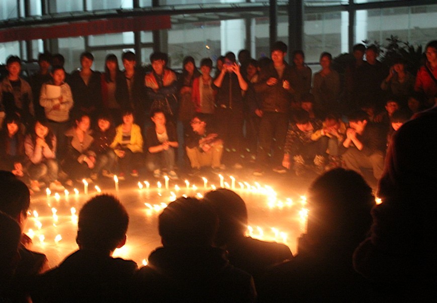 2013年4月24日,心理健康协会和心晴天使团共同开展了“祈福灾区,加油雅安”的活动。中午,在堂二食堂前开展“许愿墙,送祝福”活动,晚上八点零二分在综合楼前开展“点燃蜡烛,为逝者默哀,为生者祈福”活动。希望通过我们的许愿活动表达他们对灾区人民的祝福,同时也能号召更多的同学加入我们的祝福活动中,共同祝愿灾区人民早日渡过难关。同学们的积极性都非常高,每张便利贴上都写上了自己的祝福和心愿,祝愿灾区的人民坚强的活下去,建设新的家园。