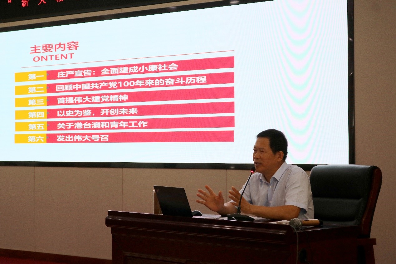 临沂市委党校庄纪旭教授以《以史为鉴、开创未来——学习习近平总书记在庆祝中国共产党成立100周年大会上的讲话》为题开展专题授课。