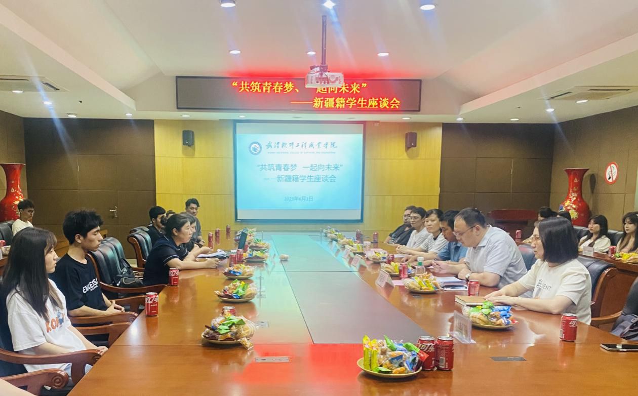 为进一步贯彻落实习近平总书记关于民族团结的重要讲话精神,做好新疆籍学生的服务管理工作。我校于6月1日下午在学术楼二楼会议室开展新疆籍学生座谈会,2021、2022级新疆籍学生、新疆维吾尔自治区内派服务管理老师格日丽玛、武汉大学党委学生工作部少数民族专职辅导员阿依古丽·哈斯木、博尔塔拉职业技术学院信息工程学院院长刘玉强、党委学生工作部部长胡英及相关工作人员参加座谈。