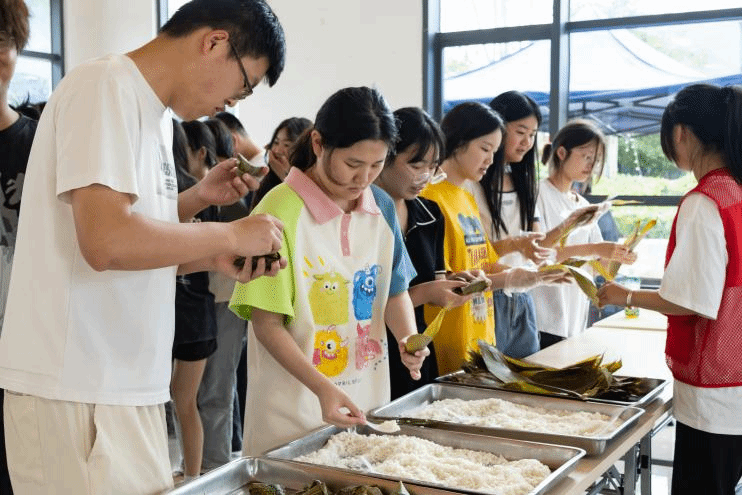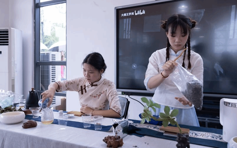 吃粽子、品香茗也是端午节的传统风俗。“解棕正思端午,怀沙莫问汨罗”。粽子由来久远,最初是用来祭祀祖先神灵的贡品。在包粽子摊位前,生命健康学院的学生正在指导来体验的师生们如何包粽子。参与活动的师生们很多,大多数都是不怎么会包、但是热情极大的生手们。大家都学的很认真,表示能亲手体会这种传统美食的制作本身就是一种极大的幸福,不管包的怎么样,拿着自己亲手包的粽子就让这个节日与众不同了。