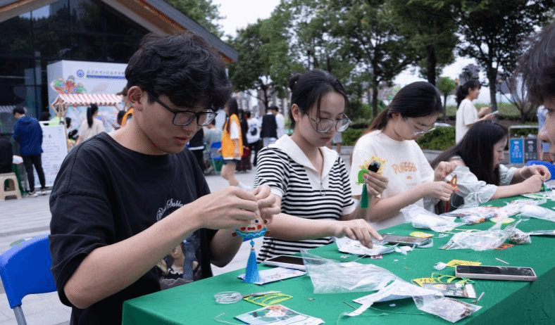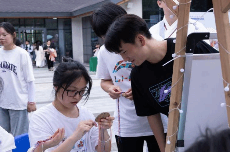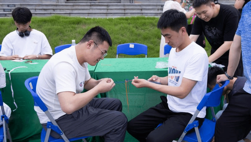 佩香囊、编彩绳、绘团扇是我国的传统风俗和工艺,不仅有辟邪去瘟之意,而且有点缀装饰之用。电子学院、汽车学院、商学院的工作人员带领现场师生一起穿针引线,手持画笔,各摊位前围满了来体验的师生。不一会儿,一个个饱满芳香的小小香囊,一根根色彩鲜艳的五彩手绳,一个个生动鲜明的精致团扇就做好了。“七彩丝线缠香囊,祝福裹满暖心房”,大家欢声笑语,其乐融融,互相赠送香囊、团扇,五彩绳,以寄托情感和对彼此的美好祝福,共同感悟中华传统文化的博大精深。