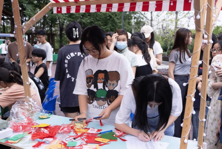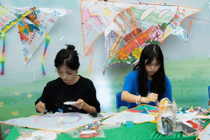 “只凭一线上青天,中有天机合自然。”纸鸢发明于东周春秋时期,距今已有2000多年。寓意“放殃”,表达除病消灾,给自己带来好运祈福的愿望。信息学院画纸鸢的摊位前围满了大大小小的体验者。同学们将画好的纸鸢拿到操场上放飞,舞动的风筝、奔跑的身影、融化在端午的微风里。