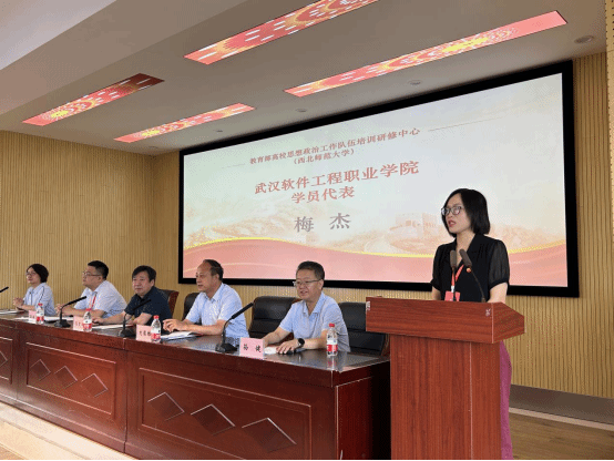 开班仪式上,西北师范大学领导致欢迎辞,郭友鹏副书记发表讲话,郭书记在讲话中强调,此次研修班旨在以实际行动进一步深入学习政治理论知识,促进我校辅导员队伍职业能力和综合素养的提升,更好落实立德树人根本任务,他要求全体学员珍惜学习机会,学思践悟,用好红色资源、讲好红色故事,守好红色根脉。学员代表信息学院学生科科长梅杰在会上做表态发言。