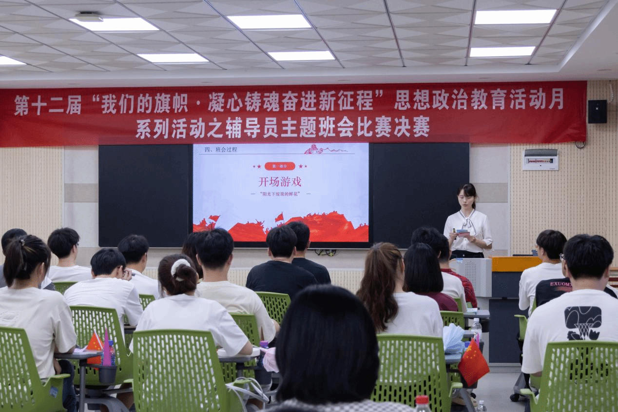 本次比赛是我校第十二届“我们的旗帜”思想政治教育活动月系列活动之一。大赛分为初赛与决赛两个环节,自2023年5月起,党委学工部组织各学院开展了主题班会初赛,初赛采用视频展示的方式进行。赛事启动以来,各学院广泛宣传、精心组织,辅导员们积极报名参赛。