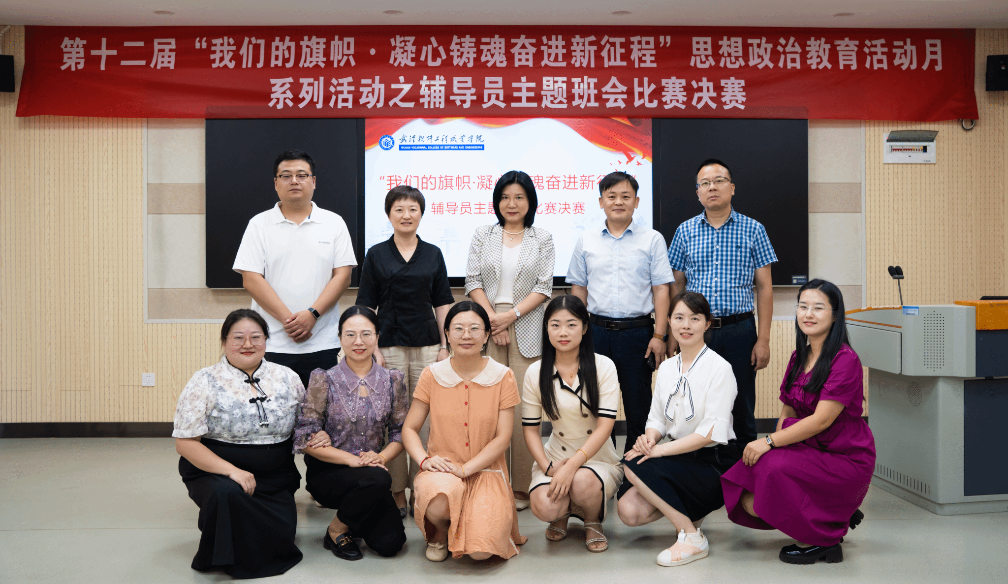 为深入开展学习贯彻习近平新时代中国特色社会主义思想主题教育活动,全面提升辅导员开展主题班会能力和育人水平,9月6日下午,我校第十二届“我们的旗帜”思想政治教育活动月系列活动之辅导员主题班会比赛决赛在2号教学楼智慧教室举行,本次比赛邀请各学院分管学生工作的领导担任评委。从初赛中脱颖而出的12位优秀选手,围绕党的二十大精神、党的创新理论、中国文化、校园安全等主题,呈现了一场又一场别开生面、寓意深远、形式多样的主题班会。通过激烈角逐,电子学院李凤、商学院易超群、汽车学院周佳惠、张雅璇4名辅导员获得一等奖,汽车学院高睿、邹慧怡、郭晓菲、艺术与传媒学院李格格等8名辅导员获得二等奖。
