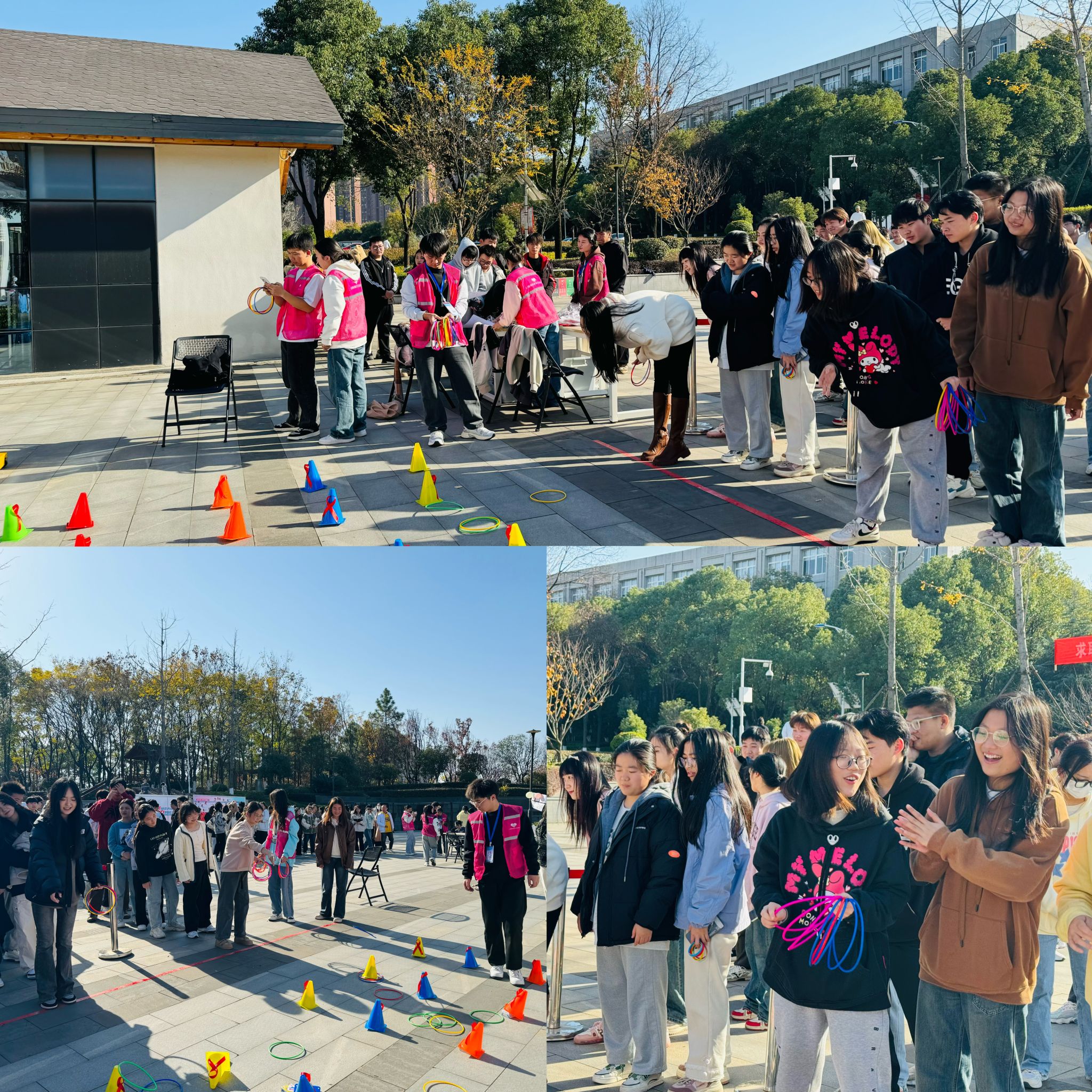 圈住健康圈住爱,信息学院与计算机学院在武软客厅共同组织了“爱的魔力套圈圈”活动。欢声笑语中,在志愿者们的引导下,同学们有序排队,凭借手中的套圈,获得了自己心仪的奖品,真可谓是收获颇丰!