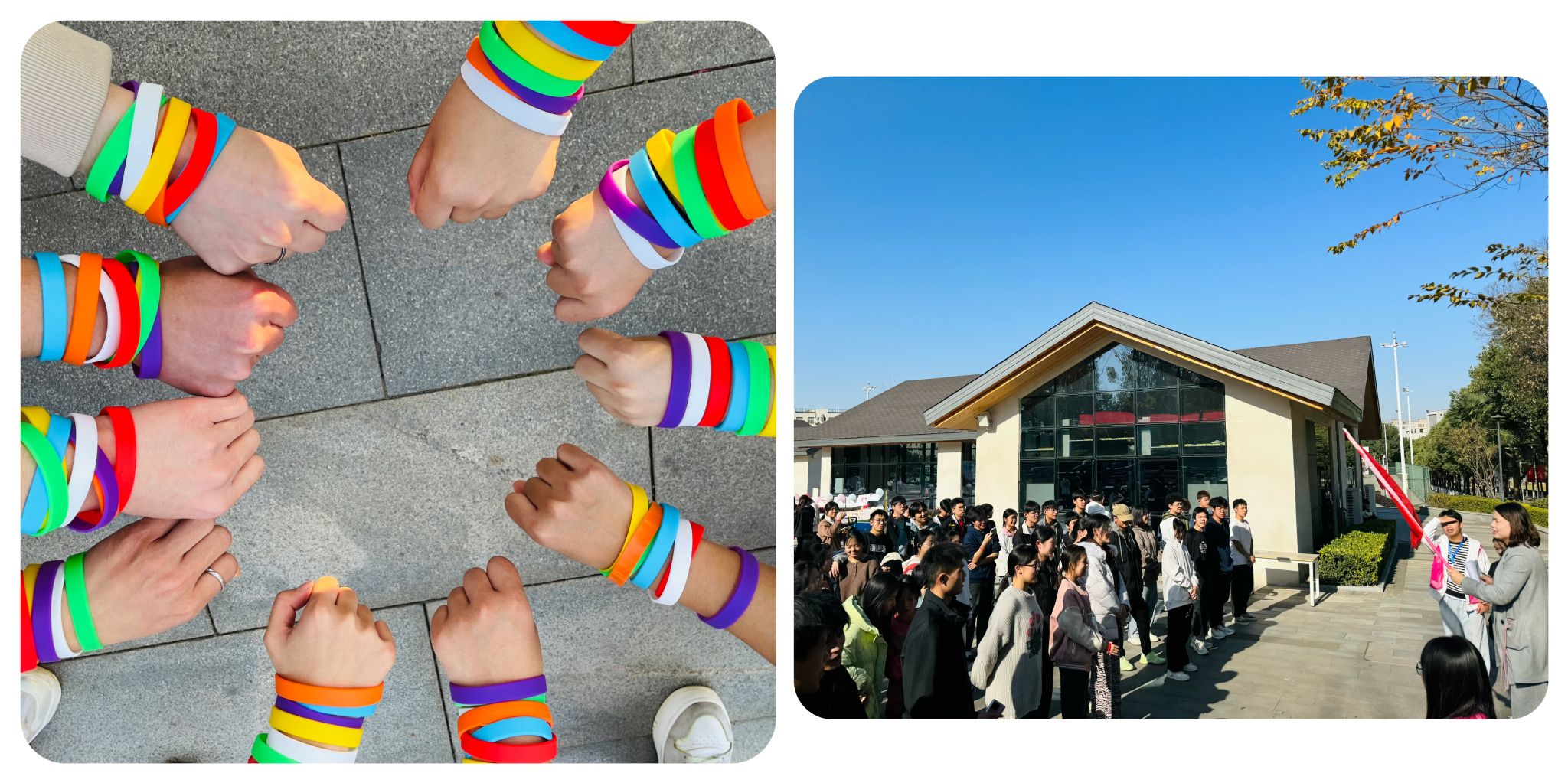 12月7日,电子工程学院和汽车工程学院联合举办了“阳光彩虹跑”活动,十个学院共200余名学生参加此次活动。下午14时,所有参与者在武软客厅集合,根据预定路线出发,打卡分布在校园内的七个地点,集齐七色腕带。同学们积极参与,挥洒热情,享受奔跑,展示出阳光、积极的精神风貌。