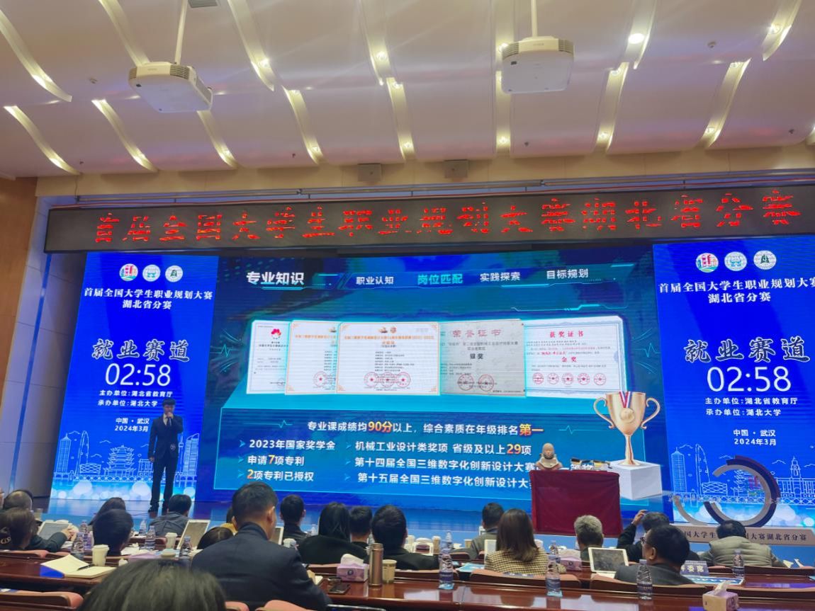 3月10日,首届全国大学生职业规划大赛湖北省决赛在湖北大学圆满落幕。我校机械工程学院张松、计算机学院刘婷两位同学分别斩获职教组就业赛道金奖和成长赛道银奖,辅导员邓威敬老师荣获优秀指导教师奖。