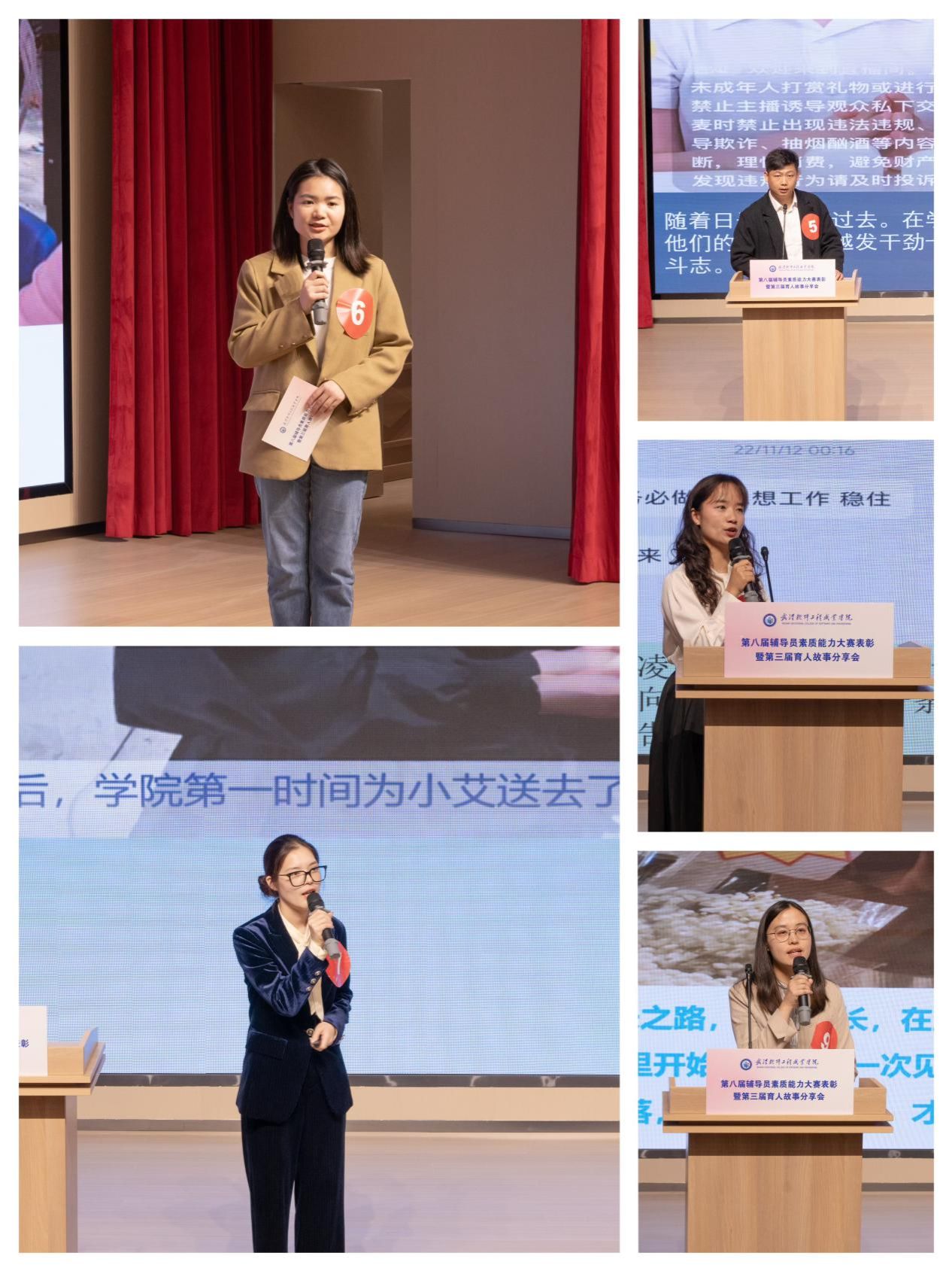 为深入学习贯彻习近平新时代中国特色社会主义思想和党的二十大精神,加强新时代辅导员队伍建设,4月11日,第三届育人故事分享会在学术楼1号厅温情呈现,至此我校第八届辅导员素质能力大赛暨第三届育人故事分享会圆满落幕。学校党委委员、副校长杨京湘出席活动。武汉大学党委学生工作部副部长徐国章,武汉工程大学党委学生工作部副部长徐迪迪,我校马克思主义学院副院长程伟、党委宣传部副部长杨慰萱、第十一届湖北省高校辅导员素质能力大赛获奖辅导员周佳惠担任此次比赛评委。党委学生工作部负责人,各学院分管学生工作的书记、学生科科长以及全体专兼职辅导员老师到场观摩。