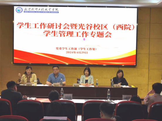 4月29日下午,我校在光谷校区(西院)实训楼报告厅召开学生工作研讨会暨光谷校区(西院)学生管理工作专题会,宣贯落实省教育厅最新工作要求,布置五一放假安全工作要求,研讨西院并入后学生工作模式。学校党委委员、副校长杨京湘,各学院分管学生工作书记、学生科科长、相关学院团总支书记,党委学生工作部(学生工作处)、团委相关人员参加会议,会后集体对西院开展了安全巡查。