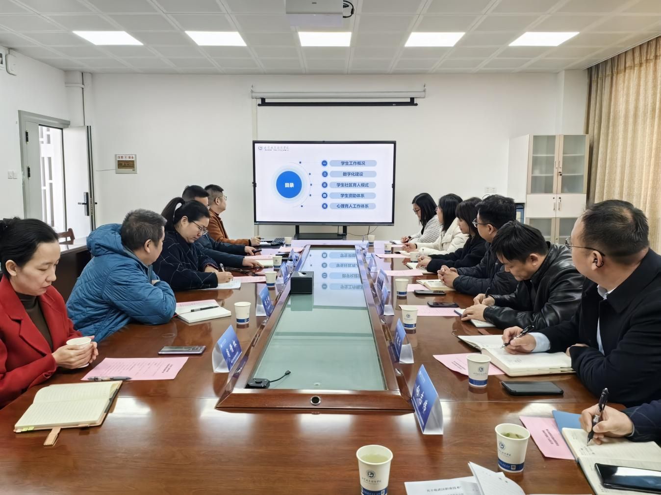在武汉职业技术学院凌曦楼三楼2号会议室召开了交流分享座谈会。座谈会上,陶舒处长主持会议并作欢迎致辞,夏挺副处长介绍了武汉职业技术学院的学生工作概况、数字化建设情况、学生社区育人模式、学生资助体系和心理育人体系。双方就大学生劳动教育、辅导员工作室建设、资助育人模式、心理健康教育等议题深入探讨。