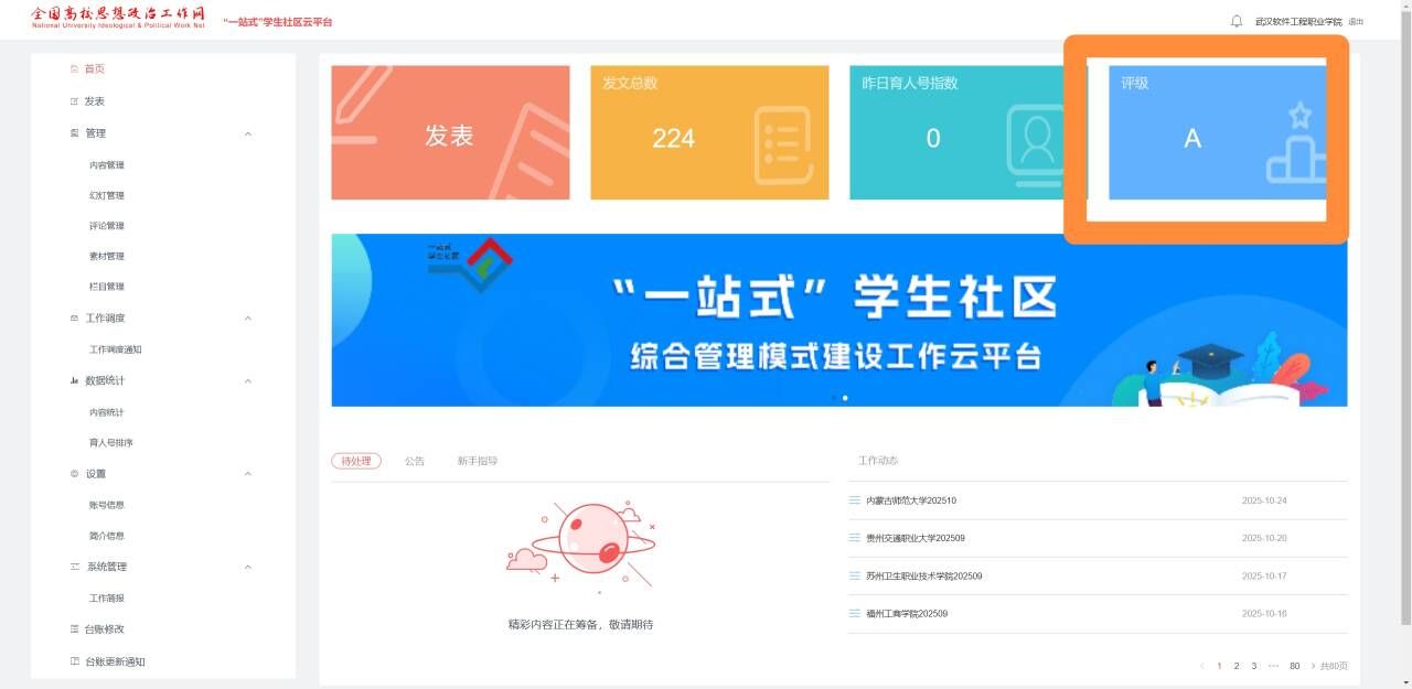 近日,全国高校思想政治工作网“一站式”学生社区云平台公布2024-2025学年全国高校“一站式”学生社区综合管理模式建设等级评定结果,我校继2022年获评A级后,今年再次获评全省A级。这一评级不仅高度肯定了学校在“一站式”学生社区建设方面取得的成效,同时也全面展示了“一站式”学生社区建设的育人成果。
