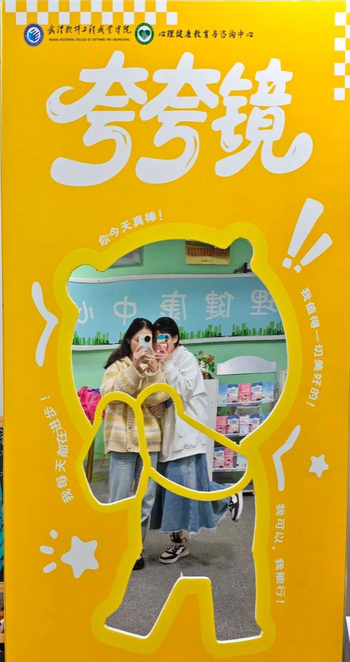 二楼心理中心功能室为同学们提供了深度自我探索的空间。在接待大厅的“夸夸镜·遇见美好的自己”区域,装饰精美的镜子旁配有“你今天真棒!”等暖心标语,同学们纷纷在此打卡并分享至社交平台,在收获点赞的同时强化了自我认同。