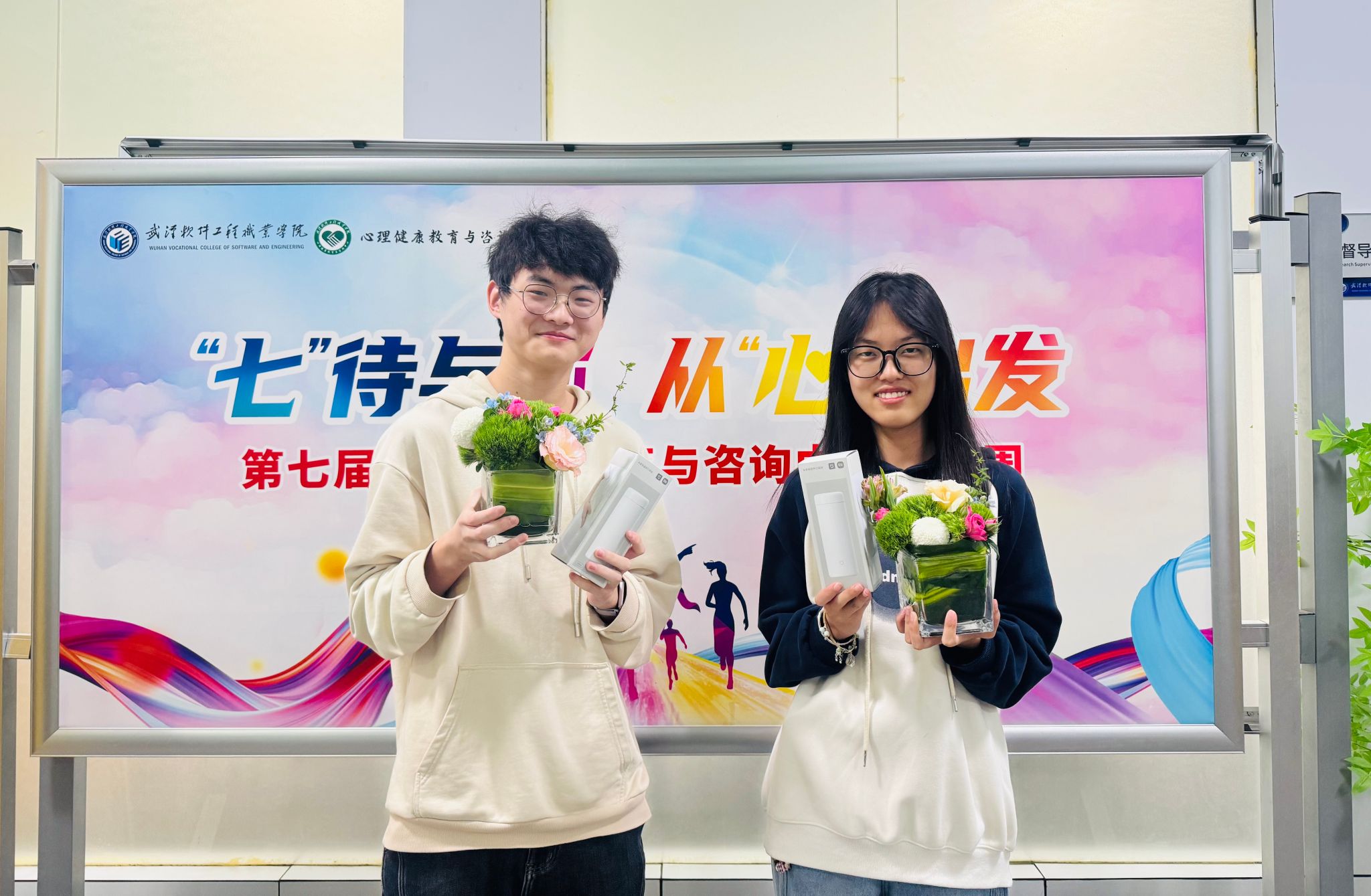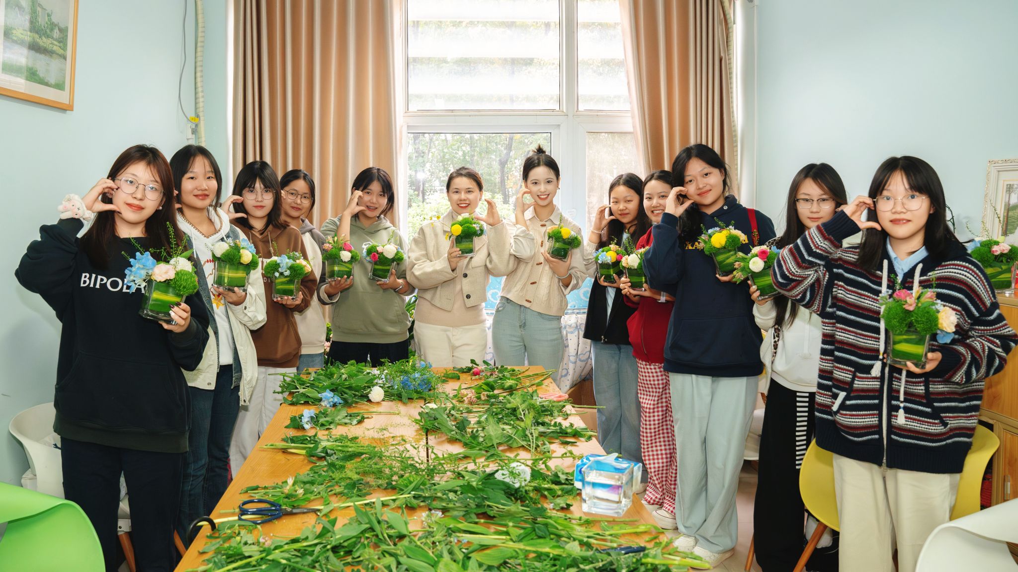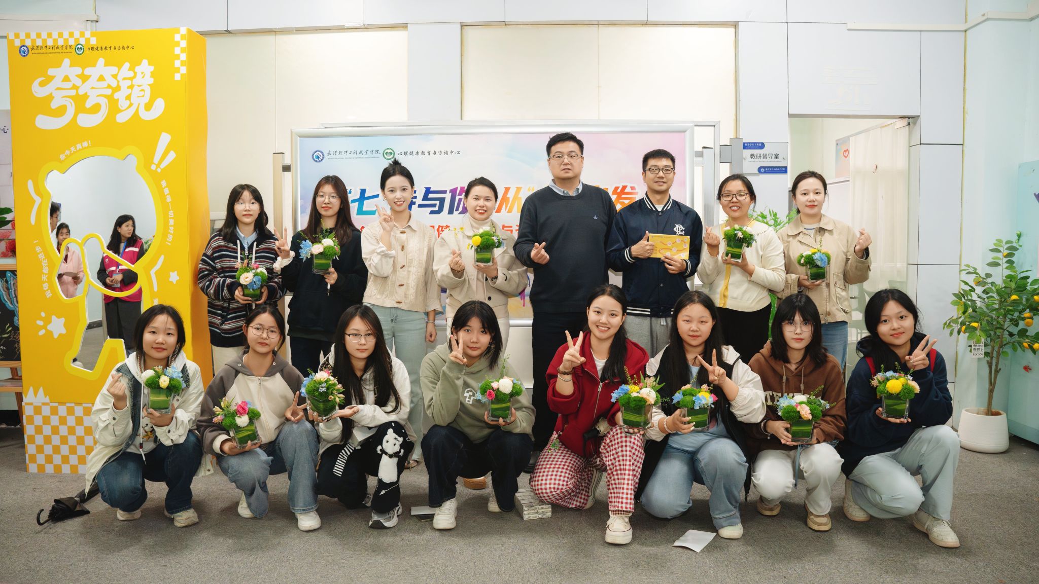 此外,“心灵花语·微景插花”作为本次活动的特色环节,在教研督导室与艺术治疗室分时段开展。同学们在老师的指导下亲手制作桌面插花微景,将这份承载宁静与美好的作品带回日常,在动手创作中释放压力、滋养心灵。