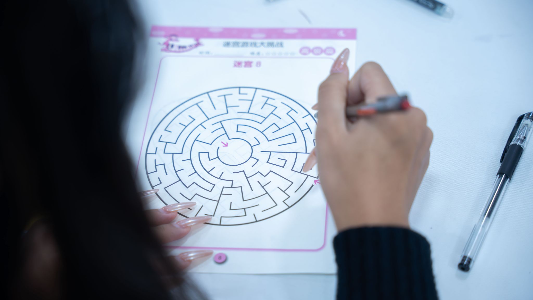 “穿越焦虑迷宫”环节中,大家手持画笔在迷宫图上耐心探索,在抵达写有“平静”“勇气”等字样的出口时,切身感受到“焦虑终有出路”的深刻寓意。
