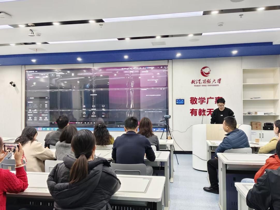 在主题授课环节,企业导师宋豪老师结合自身十余年直播电商实战经验,围绕直播运营框架搭建、选品策略、流程设计、话术技巧与互动场景营造等核心内容展开系统讲解。他通过“校园产品推广”“职业规划直播”等贴近学生工作的实际案例,深入浅出地阐释了直播电商在学生教育、就业指导等方面的应用潜力。互动问答环节,辅导员们围绕“直播如何助力就业指导”“校园直播活动策划要点”等问题踊跃提问,宋豪逐一细致解答,现场交流气氛活跃。