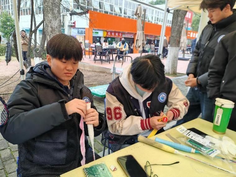 活动现场,体育学院志愿者们提前备好各色手胶、封口胶等材料,热情接待前来咨询的师生。志愿者们充分发挥专业优势,凭借熟练的技巧,精准为师生的羽毛球拍缠好手胶,从起胶固定到收尾修剪,每一个步骤都细致规范,不仅让球拍握感更舒适,还能有效防止运动中打滑受伤。