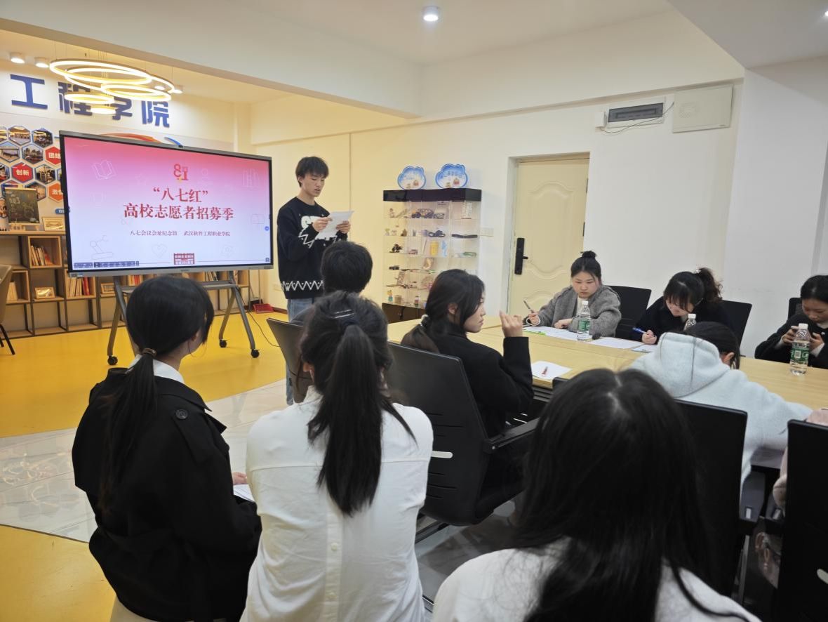 (通讯员:秦佳琪 梁好)为深入贯彻落实习近平总书记关于志愿工作的重要指示精神,引导高校学子在志愿服务中锤炼品格、传承红色基因,2026年3月19日下午,八七会议会址纪念馆“八七红”青年志愿者高校招募季海选活动第二轮面试在武汉软件工程职业学院信息学院顺利开展。纪念馆公教部3名专业老师莅临现场担任评委,信息学院12名优秀学子踊跃参与,同台竞技展现青年志愿风采。