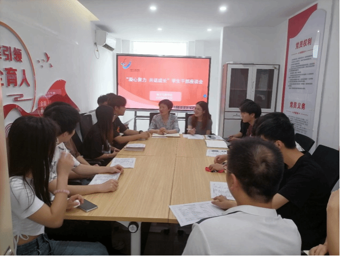(通讯员:杨素贤、熊倩倩)为更好加强学生干部队伍建设,充分发挥学生组织的桥梁纽带作用,更好地把握学生生活及学习的思想动态,听取学生对于学院发展建设的意见建议及各部门工作思路,强化学生干部的服务力。5月30日,学院在四栋“一站式”学生社区召开了以“凝心聚力 共话成长”为主题的学生干部座谈会,会议由团总支学生副书记冉崇良主持,我院党总支副书记王祎、团总支书记熊倩倩、彭波老师及团总支各部门学生代表共同参加。