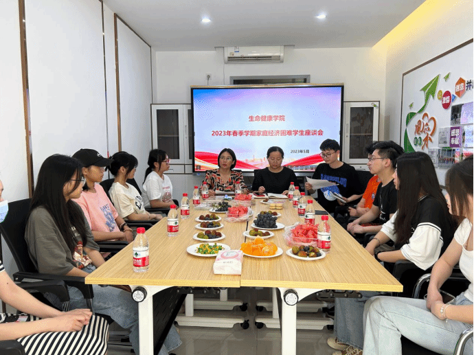 (通讯员:江秀,摄影:陈立)为深入贯彻落实党的二十大精神,更好地贯彻落实高校家庭经济困难资助政策,进一步了解家庭经济困难学生的学习、生活及思想情况,有针对性地开展帮扶与指导,让学生安心投入学习生活,2023年5月30日下午,生命健康学院在8栋宿舍楼“一站式”学生社区召开了2023年春季学期家庭经济困难学生座谈会。学院党总支副书记刘怡静、学生科科长唐圆、学生资助工作联络员江秀及9名家庭经济困难学生代表参加了座谈会。会议由辅导员江秀老师主持。