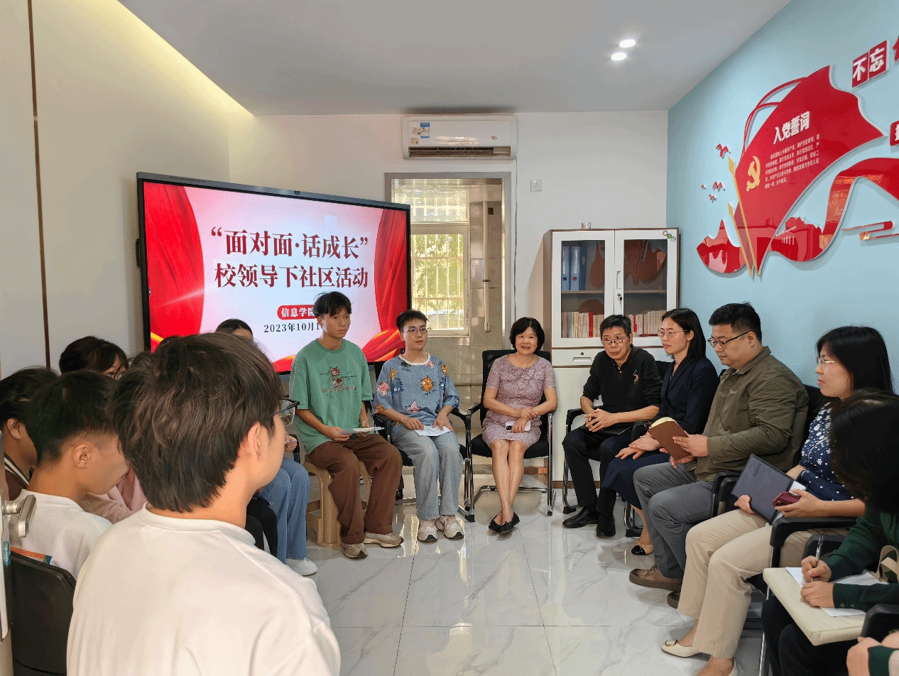 (通讯员:董诗瑶)为倾听学生心声,畅通沟通渠道,我院持续开展校领导进社区“面对面 话成长”系列活动,10月16日下午2:30,副校长杨京湘带领党委组织部、党委宣传部、党委学生工作部、团委、马克思主义学院等部门和学院负责人一行在信息学院党总支副书记胡寒玲陪同下,深入信息学院12栋一站式学生社区与学生互动交流。