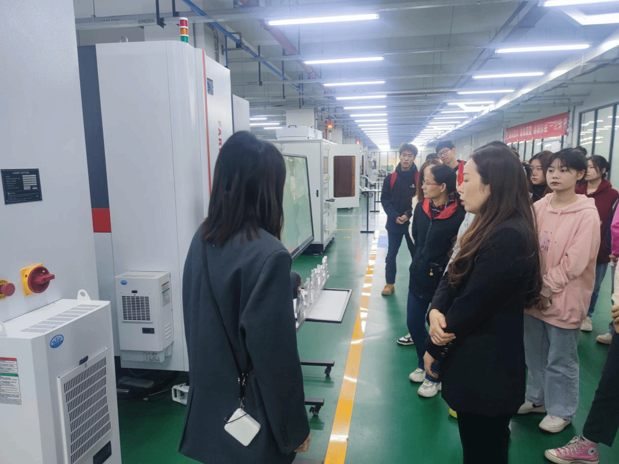 首先,师生们进入生产车间进行参观学习。在工程师的讲解下,激光切割、激光刻蚀、3D打印等生产工艺的原理、设备与成果被一一呈现,看到这些高精尖的一体化全自动设备与成果,师生们不禁感叹,从舰艇船板、高铁动车组配件,到芯片晶圆、手机摄像头组件上拇指大小的防伪二维码,创新成果至刚至重、至柔至微,都展示了华工激光乃至武汉光谷“追光”的力量。