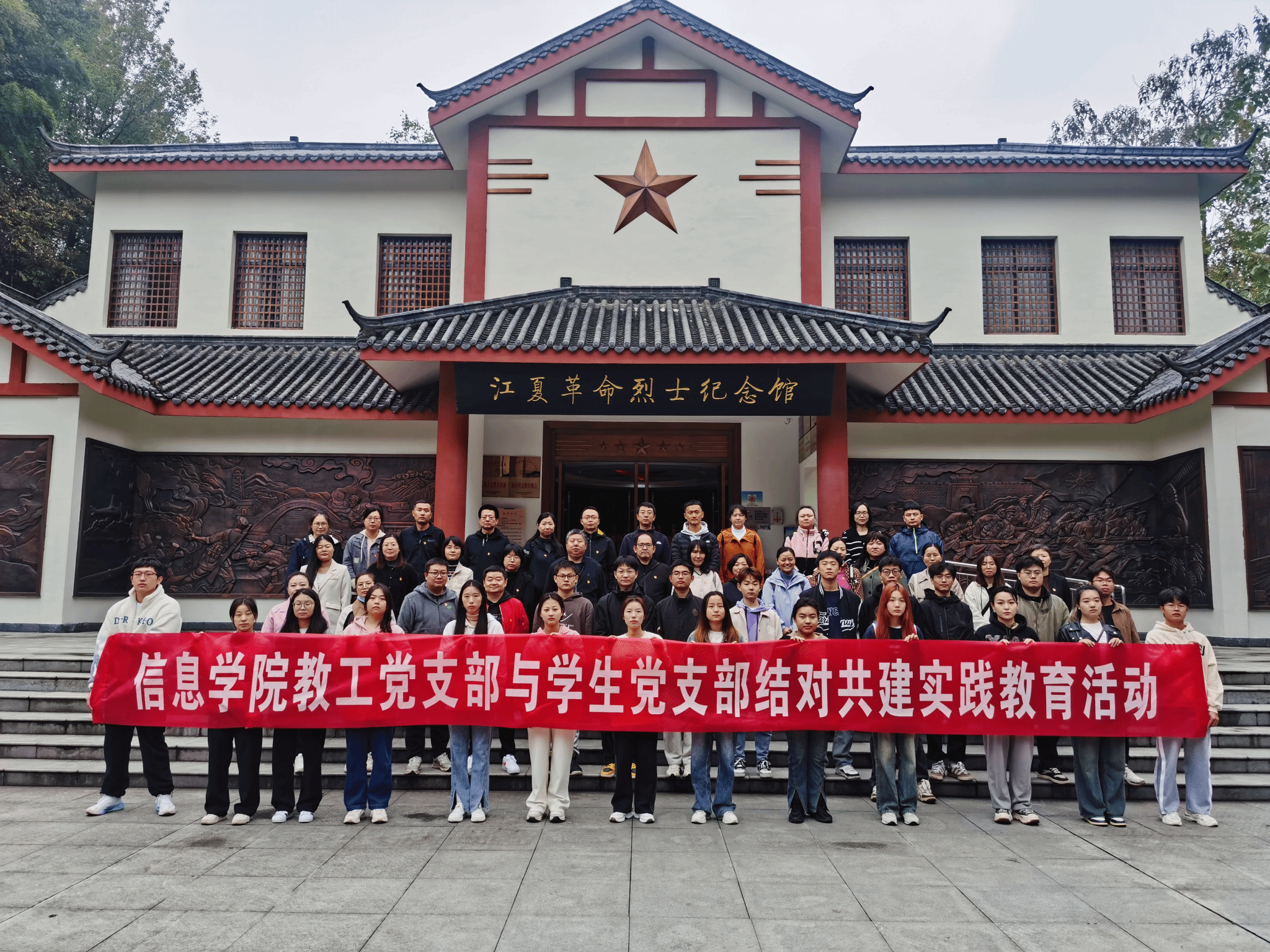 (通讯员:蔡顺康)2023年11月10日上午,在信息学院党总支副书记胡寒玲带领下,学院教工党支部与学生党支部共52名师生在江夏区革命烈士纪念馆开展结对共建实践教育活动,此次活动以“缅怀先烈继往开来,牢记使命接力前行”为主题,旨在通过实践体验教学,加强师生的爱国主义教育,弘扬爱国主义精神,传承红色基因。