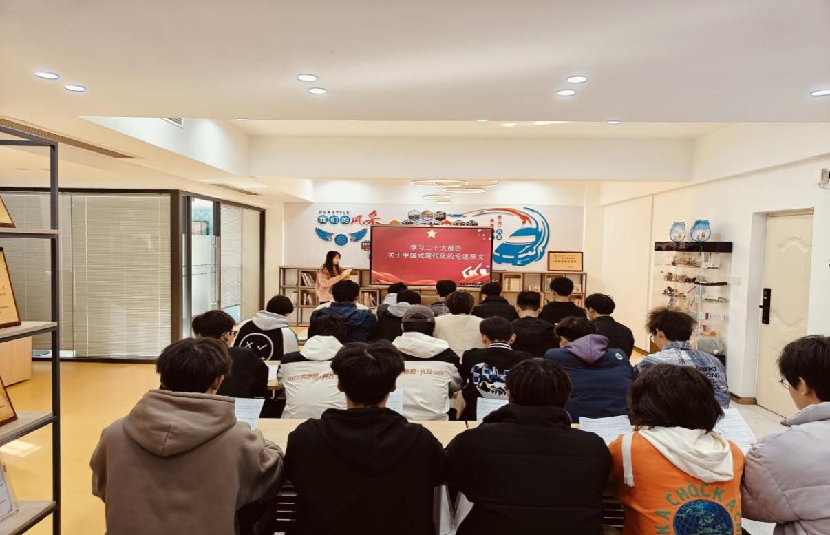 学习会上,团员青年共同朗读《高举中国特色社会主义伟大旗帜为全面建设社会主义现代化国家而团结奋斗——在中国共产党第二十次全国代表大会上的报告》部分内容,并踊跃分享自己对“中国式现代化”和“强国复兴”的理解。学院“百生讲坛”主讲人张帅结合自身经历和感悟,向大家阐述了青年学生如何在学习和生活中践行“强国复兴”这一主题。马克思主义学院青年教师谢开磊对本次专题学习会进行了点评,希望大家将所学所悟融入日常学习生活,做有责任、有担当的新时代青年。