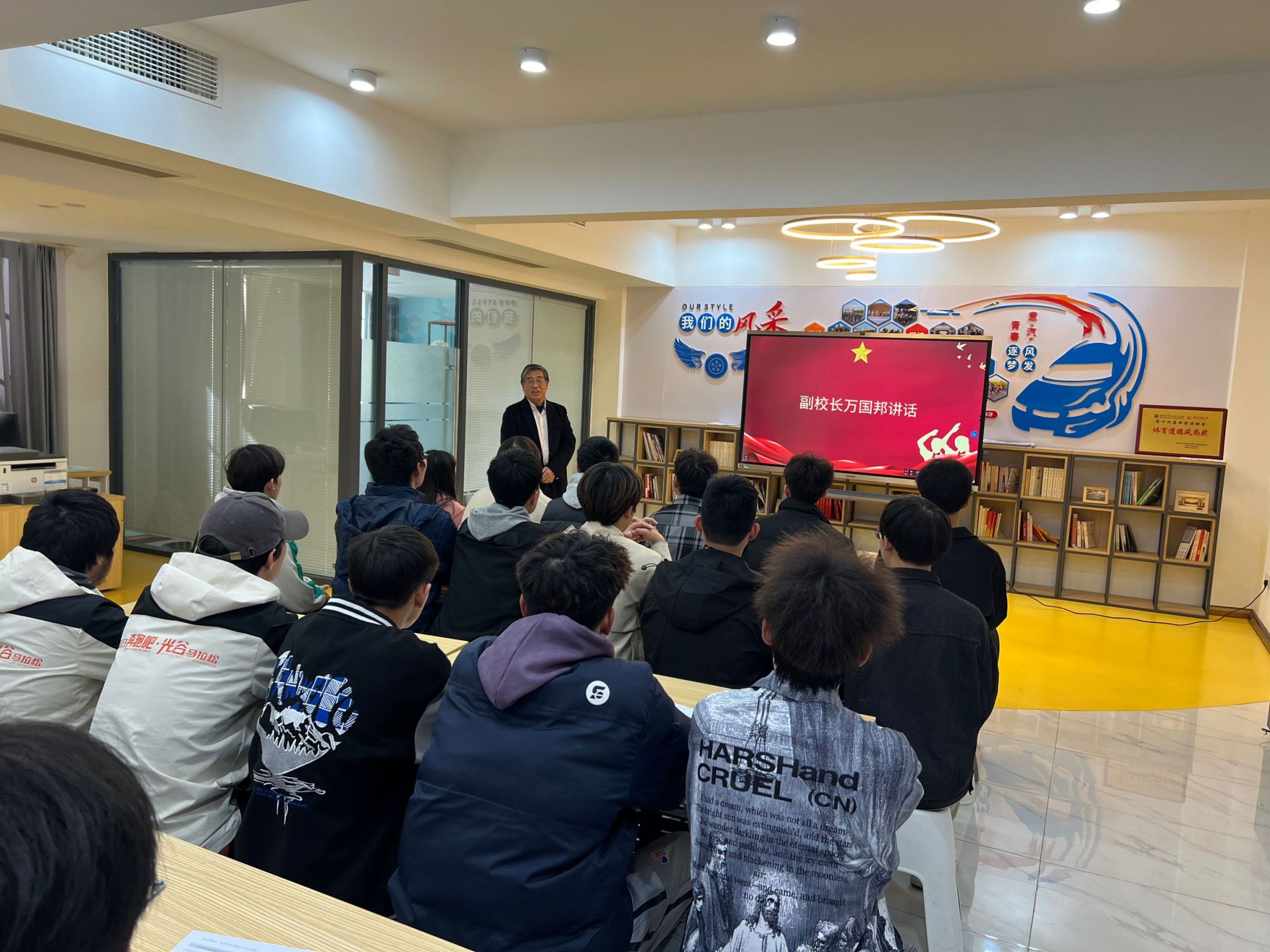 副校长万国邦对本次学习会进行总结。他表示与同学们一起参与主题学习感到很高兴,“强国复兴”是每一个中国人的责任和使命,作为新时代青年更应该积极参与投入这一伟大事业之中。他还强调了学习会的重要性和意义,希望大家能够为实现中华民族伟大复兴的中国梦而不懈努力奋斗。同时也希望全体团员青年要以这次学习会为契机加强学习,多参与社会实践,做新时代的追梦人!