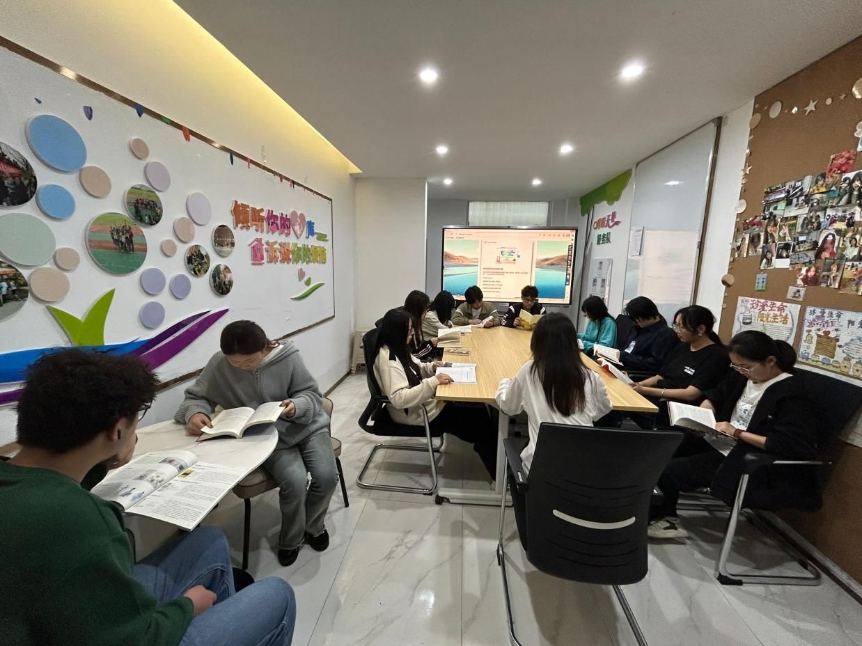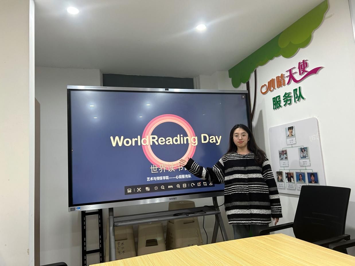 (通讯员:冯舒雅)读书不觉春已深,一寸光阴一寸金。光阴荏苒,春深日暖,第29个“世界读书日”临近,艺术与传媒学院于2024年4月1日下午,在5栋133“一站式”学生社区心晴驿站召开了“以艺愈心”系列之“书香沁心”心理主题活动。活动共有热身小活动手指操、绘本分享、共读一本书、分享活动感受四个环节,心晴天使服务队全体成员参与。