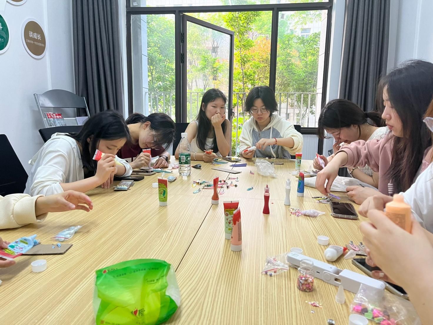 活动中,心晴天使服务队的成员们准备了丰富多彩的奶油胶材料,并耐心指导学生们如何利用这些材料创作出属于自己的手工艺品。学生们在轻松愉悦的氛围中,充分发挥想象力和创造力,用奶油胶制作出各式各样的独特作品。这些作品不仅展现了学生们的艺术天赋,更让他们在创作过程中感受到了放松与快乐,有效缓解了学习带来的压力。