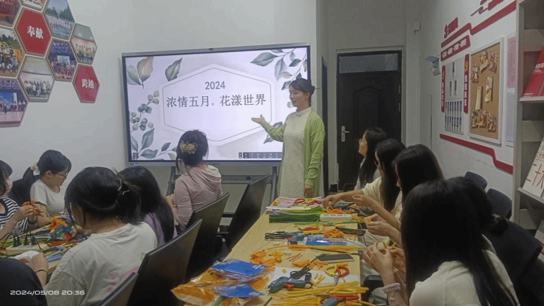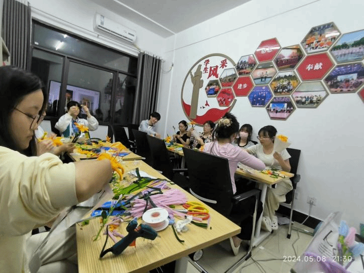 (通讯员 阮方 王铭欣)2024年5月8日晚20:00,商学院在一站式社区举办了“浓情五月,花漾世界”——商学院心理健康活动月活动暨母亲节活动。本次活动借母亲节为契机,以花朵为灵感,将母亲节和心理健康主题活动融合在一起,通过制造仿真花朵的方式,引导学生发现美、创造美,在手工活动中释放内心压力,深化对母亲情感的理解,共同构建积极健康的心理状态。