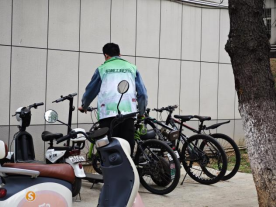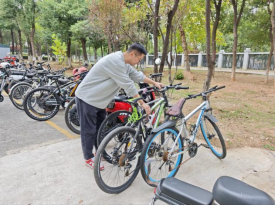 支部党员教师对宿舍门口的自行车、电动车也进行了整理摆放。将未停入停车区自行车一一摆放整齐,让原本杂乱的停车区域变得井然有序。