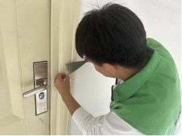 为营造干净、整洁、文明、和谐的宿舍环境,着力提升寝室文明形象,党支部还组织开展清除“小广告”,擦亮“大文明”的志愿服务活动。大家分工合作,带上铲子、抹布、扫帚、垃圾袋等工具,集中对学生公寓15栋、16栋小广告进行清理。