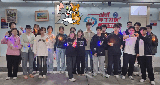 活动中,所有人需要戴上发光手环进行跑或者躲,你追我赶的紧张戏码持续上演着。同学们全身心投入,尽情享受着追与逃带来的刺激。经过一个小时的激烈角逐,最终产生了“猫王”和“鼠王”。