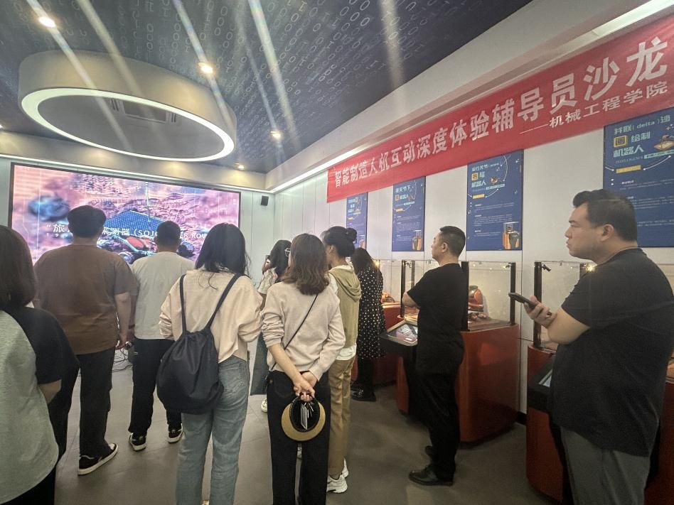 2025年4月25日上午,由党委学生工作部主办,机械工程学院承办的特色辅导员沙龙活动在1号实训楼举办,聚焦智能制造人机互动深度体验。此次活动旨在通过前沿科技互动,帮助辅导员缓解工作压力,探索创新育人模式。党委学生工作部副部长叶苗及各学院共37名辅导员参与其中,共同投入到这场融合科技与关怀的活动中。