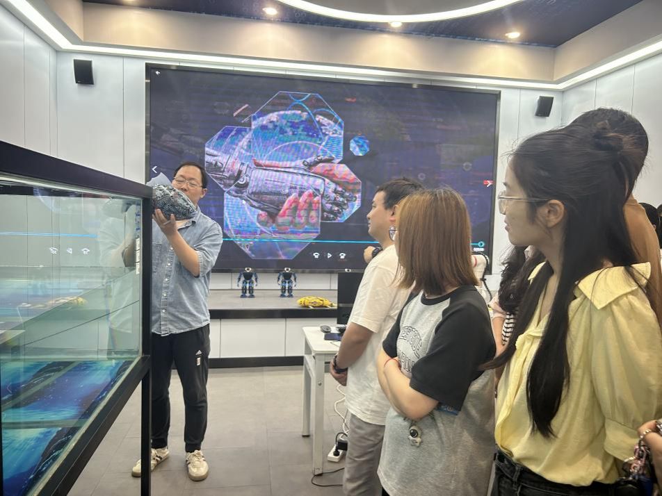 紧接着,在舒钊老师的操作下,跳舞机器人伴随欢快的音乐节奏,灵活摆动双臂、轻盈扭转身体,如同灵动的舞者;水族箱内,仿生机器鱼凭借精妙的仿生结构,舒展鱼鳍、摆动尾部,在清澈的水中悠然穿梭、自在沉浮,时而聚拢、时而散开,仿佛与周围环境融为一体。