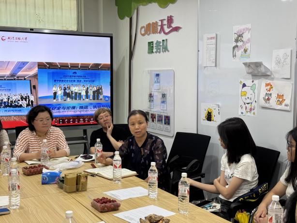 在自由发言环节,同学们结合聆听图灵奖得主约翰·霍普克罗夫特教授交流会的感悟踊跃发言。文咏梅同学思考了人工智能下大学生如何适应未来社会;蔡锦亿同学表示座谈会让自己视野大开,毕业设计将深挖本土文化、努力创新,传承文化;邓姝容同学则表示教授的分享让她意识到在数字时代,大学生不能只局限于专业知识的积累,更要培养跨领域的综合素质,今后自己会主动学习相关课程,提升自己的数字技能,让自己的设计更具前瞻性和竞争力。同学们意识到技术变革将影响教育生态,明白未来社会将因数字技术发生巨大转变,开始对自身专业发展与跨学科融合有了进一步的思考。