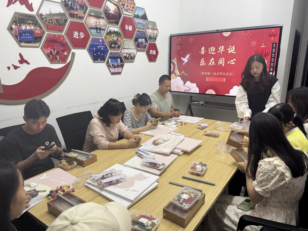 合影收官,定格美好瞬间。11点20分,活动进入尾声。全体参与者手持作品,伴随着“3、2、1,祝祖国生日快乐”的齐声祝福,相机定格下一张张洋溢着幸福的笑脸与饱含深情的创意手作。商学院学生科长方立总结时说:“今天大家用手作传递爱国情,既收获了欢乐,更深刻体会到了节日的深层内涵。后续“一站式”学生社区会继续做大家的‘第二个家’,多办这样有温度的活动。”