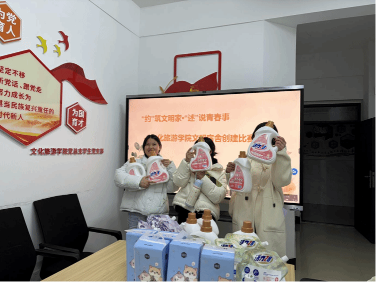 (通讯员:杨薇;摄影:陈靳怡)为进一步营造积极向上、温馨和谐的宿舍文化氛围,凝聚宿舍成员向心力,同时将大学生心理健康教育融入宿舍生活日常,文化旅游学院以“‘约’筑文明家・‘述’说青春事”为主题,于11月开展了文明宿舍创建比赛活动。本次活动针对不同年级学子设计差异化参与形式,既鼓励新生用公约筑牢文明根基与心理支持防线,也引导学长学姐用故事传递青春温度与心理健康力量,全方位展现同学们的宿舍生活风貌与精神追求。11月18日,院学生科在18栋“一站式”学生社区组织了简单却热闹的颁奖仪式,并邀请获奖同学们分享创作故事。