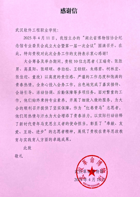 自2023年冬日的初次接洽,到2024年盛夏的正式签约,一段赓续红色血脉、践行青春誓言的旅程已温暖启航两年。同学们不仅是历史的聆听者,更成为坚定的星火接力者,先后获评“优秀志愿团队”与“卓越志愿团队”称号。武软学子以初心映照初心,志愿服务的身影成为红巷里一抹动人的风景。