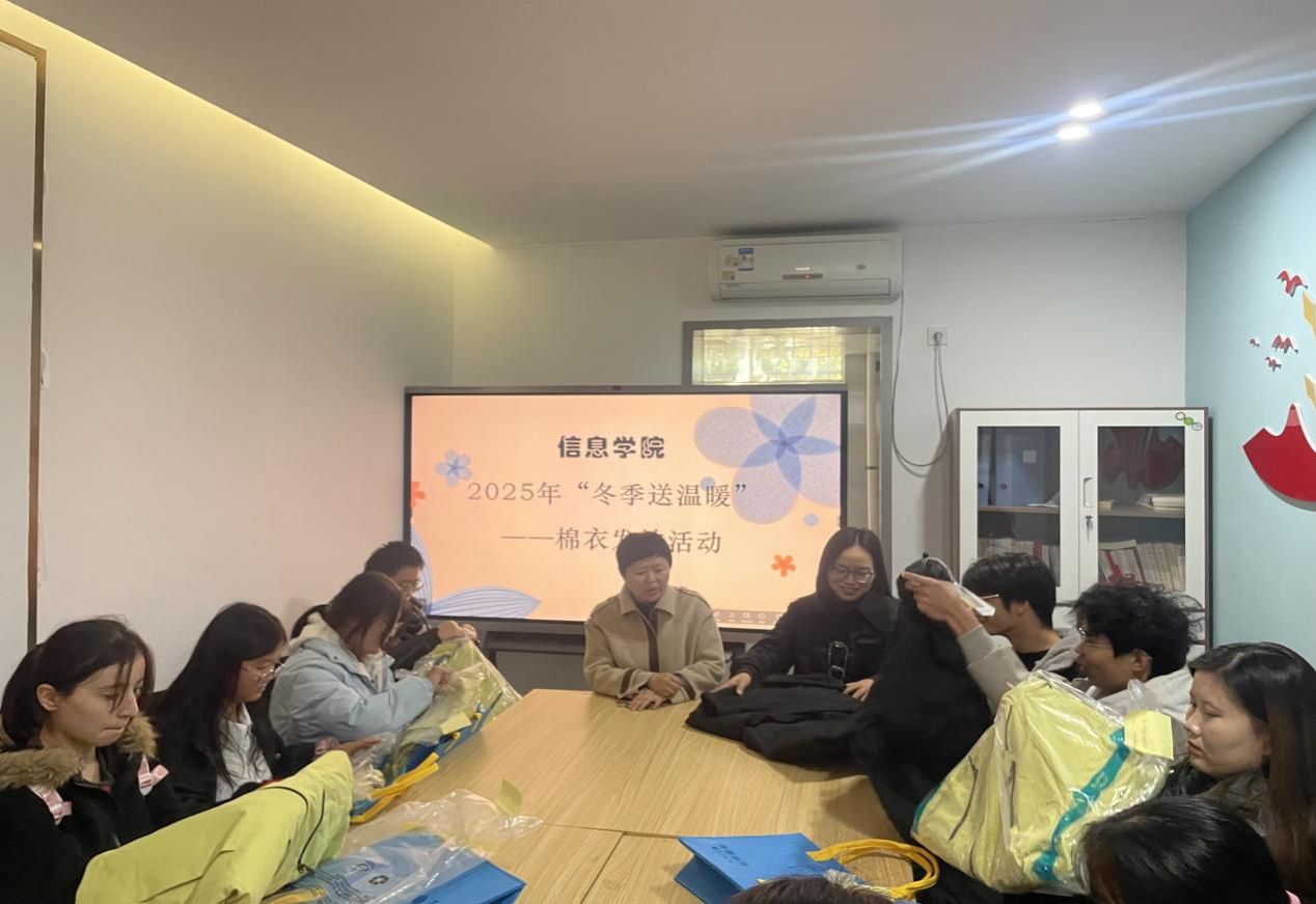 (通讯员 贾茹)为深入贯彻落实国家资助政策,切实关怀家庭经济困难学生的成长与发展,信息学院于11月18日中午,在12栋“一站式”社区开展了“‘冬季送温暖’棉衣发放活动暨‘助学·筑梦·铸人’学生代表座谈会”。活动旨在物质上给予学生支持,在精神上给予学生鼓舞,让这个冬天充满浓浓的温情与力量。院领导、学生科科长、2025级辅导员参加了座谈,与各班学生代表进行了亲切深入的交流。
