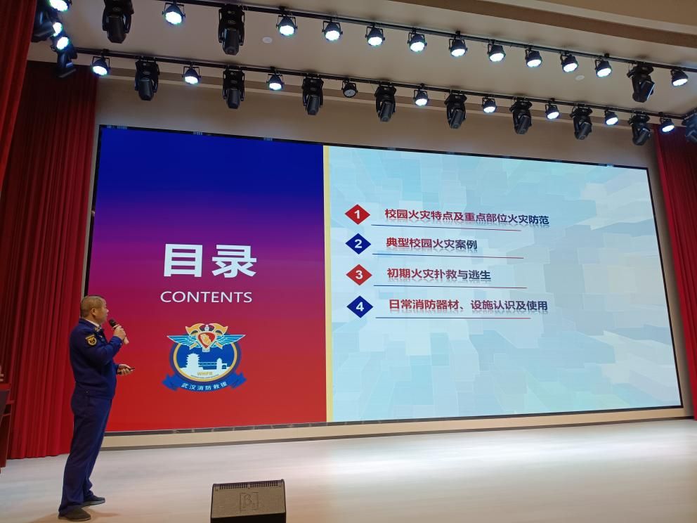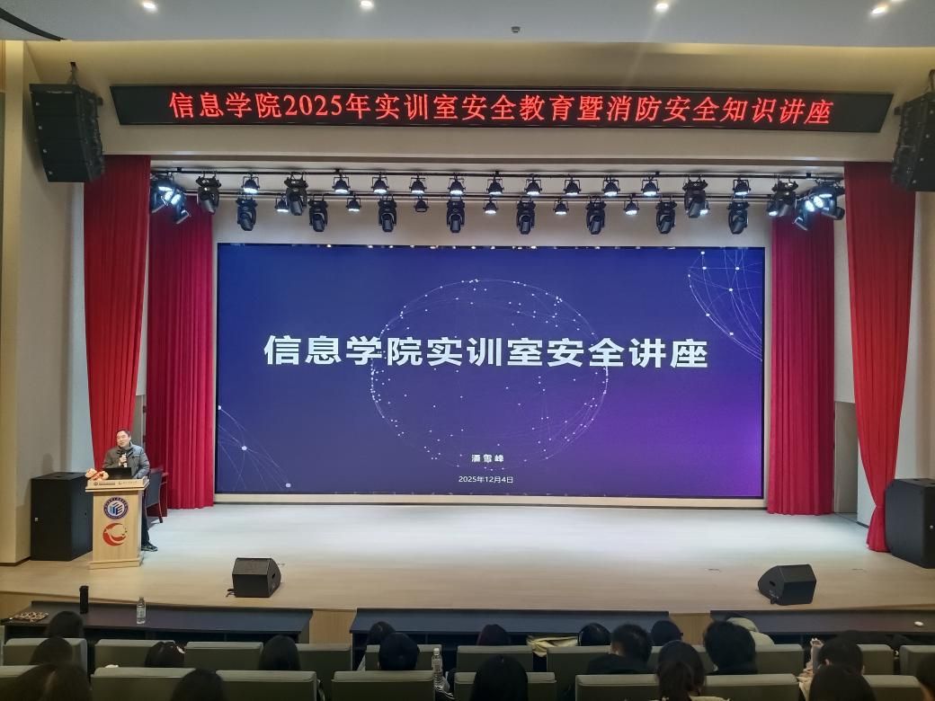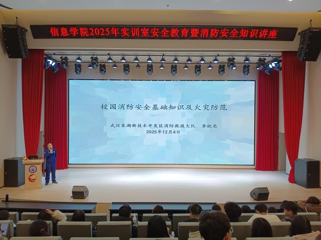 (通讯员:潘雪峰)12月4日下午,信息学院2025年实训室安全教育暨消防安全知识讲座在一号报告厅顺利开讲。校保卫处特别邀请了武汉东湖新技术开发区消防救援大队参谋李欣亮为大家授课。信息学院副院长孙琳,实训室主任、学生科科长及2025级学生共同参加学习。
