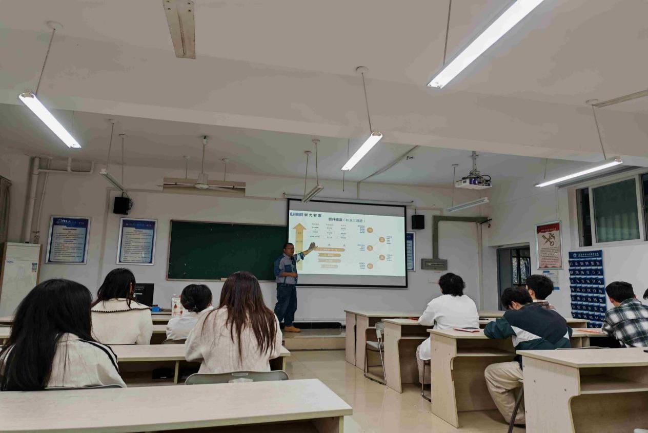 随后,有家实业主管围绕职业发展路径展开宣讲,重点介绍公司“管理+专业”双通道晋升体系,详解人才培养模式、岗位设置及发展机遇。同时,她结合自身从实习生成长为管理者的职业经历,分析连锁行业的能力要求,建议同学们明确职业目标、积累实践经验、提升专业技能,为职场发展筑牢基础,并向同学们展示了有家真实的工作环境以及浓厚的人文关怀氛围,让同学们对未来的职场生活充满了期待。