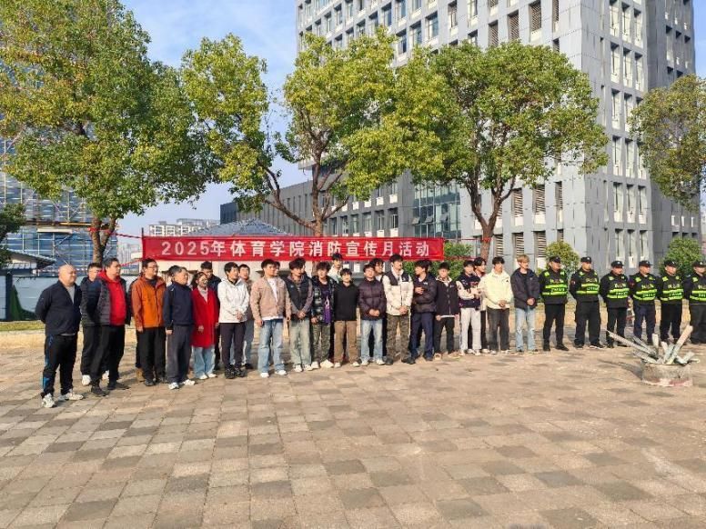 作为学校“消防安全宣传月”的重要实践环节,本次演练得到了校保卫处的大力支持。活动现场,“2025年体育学院消防宣传月活动”的红色横幅格外醒目,时刻提醒着大家消防安全的重要性。学院师生、校保卫处工作人员一同整齐列队,消防演练全程有序推进。