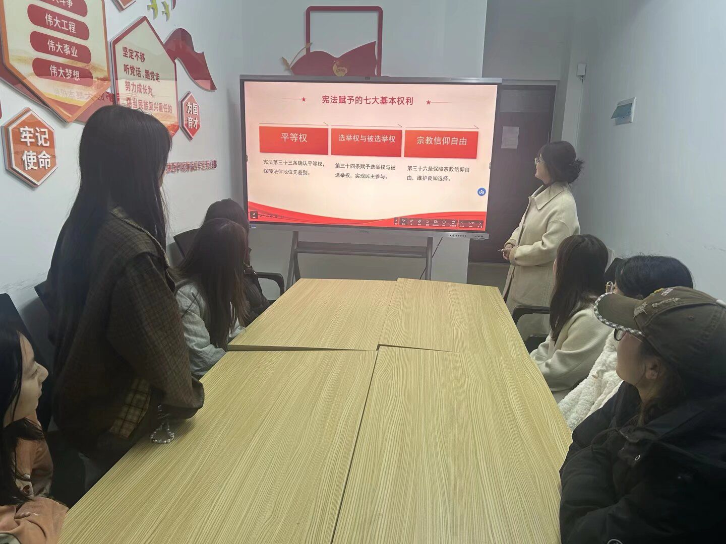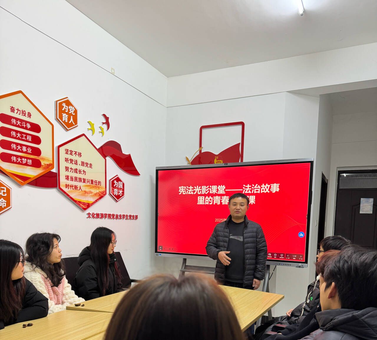 本次活动紧扣文化旅游学院专业特色,构建“理论学习+分享传播”活动体系,吸引全院各年级学生踊跃参与。理论学习环节,各年级辅导员聚焦宪法发展历程、核心内容、重要意义及大学生相关权利义务,通过案例剖析、互动问答等形式,将抽象宪法条文转化为鲜活生活实例,助力学生深刻领会宪法根本大法地位,树立正确的权利观与义务观。
