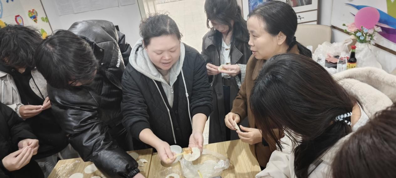 活动现场温馨融洽。在布置一新的133社区活动室里,师生们围坐一起,揉面、擀皮、包馅,巧手翻飞间,形态各异的饺子承载着欢声笑语不断呈现。大家一边交流家乡的冬至习俗,一边分享学习生活趣事,其乐融融。当热气腾腾的饺子出锅时,共享劳动成果的满足与节日的暖意洋溢在每个人心中。